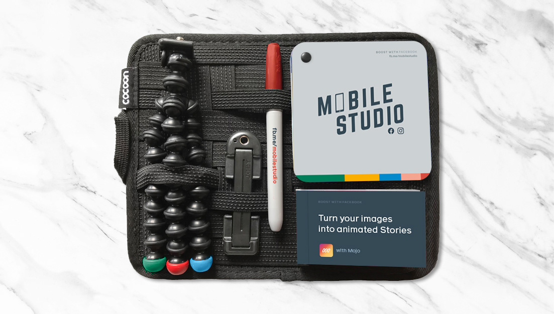 The Solution: We built a central creative resource for SMBs – an optimized site to empower and guide them through the strategy of creating mobile-first content and ads using mobile apps. Meta (Facebook) Mobile Studio is the home for learning how to make great mobile ads right from your phone. It provides easy-to-follow video guides, a downloadable planning brief and creative app recommendations to get you started. Creative outputs included a Mobile Studio Kit (complete with a tips booklet, video inspiration flip-book, and mobile tripod); Top Apps card; activation design for Mobile Studio's booth at Meta's global Community Boost events; and a website full of app demos, best practices, and mobile ad examples.